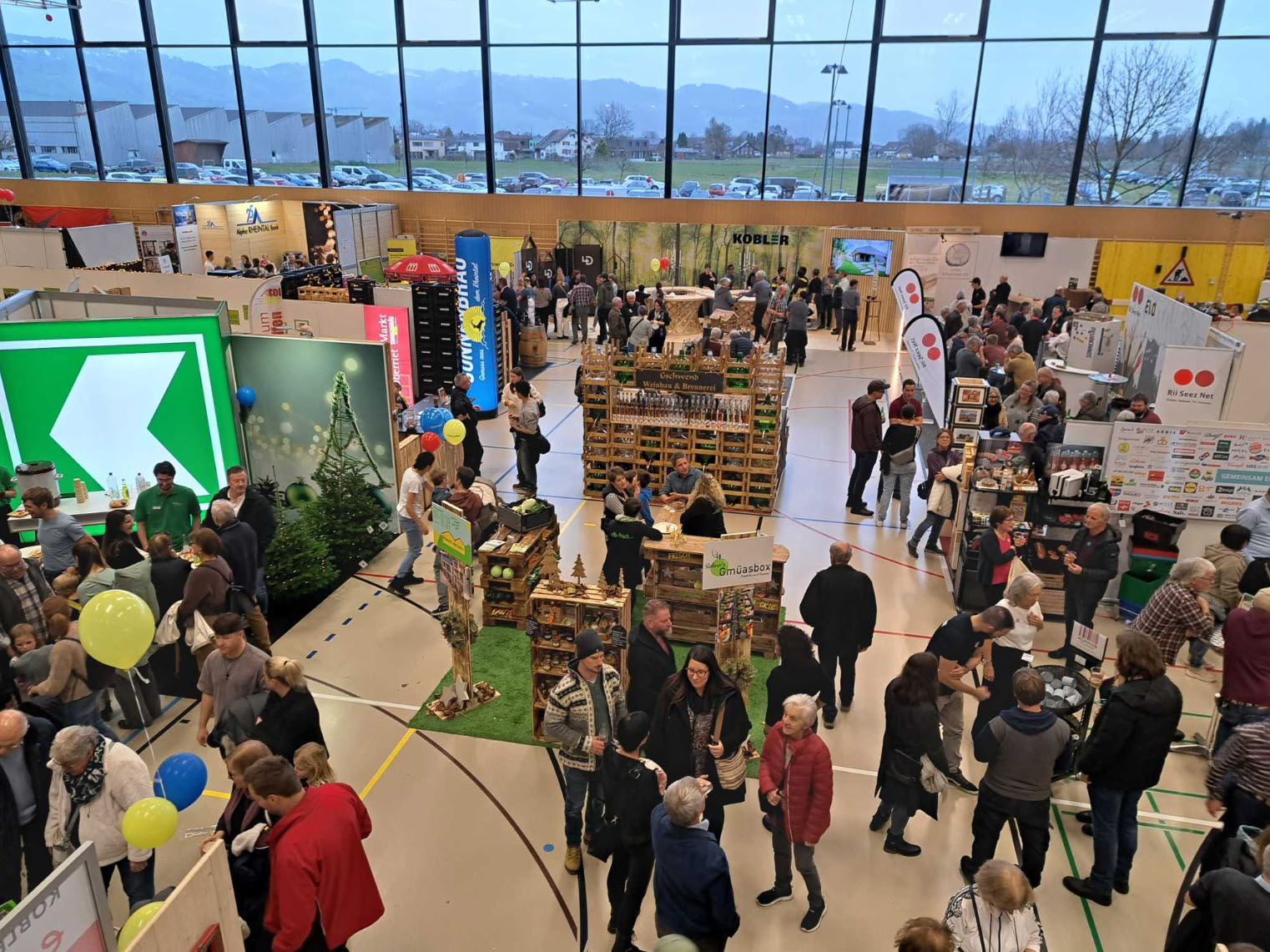 Die Sporthalle Bildstöckli verwandelte sich am ersten Dezemberwochenende in einen lebendigen Treffpunkt für das lokale Gewerbe. Rund 60 Unternehmen aus Oberriet, Eichenwies, Montlingen, Kriessern und Kobelwald präsentierten sich an der Weihnachtsausstellung 2025 und boten den Besuchenden einen vielfältigen Einblick in ihre Tätigkeiten. Bereits seit Anfang Jahr waren sämtliche Standplätze ausgebucht. Das grosse Interesse zeigte sich dann auch vor Ort. Die Gäste konnten an den Ständen entdecken, was in der Gemeinde entsteht, und mit den Ausstellenden unkompliziert ins Gespräch kommen. Vor der Halle gab es zusätzlich einen kleinen Weihnachtsmarkt, ein gemütliches Festzelt und das beliebte Raclettestübli. Der Samichlaus war an mehreren Zeitpunkten unterwegs